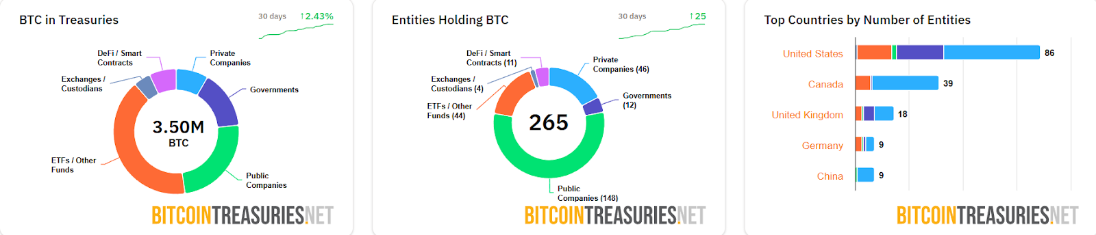 Şirketin hazinelerinde toplam 3,5 milyon bitcoin tutuluyor. 853 bin BTC, yani kamu şirketlerinin hazinesindeki toplam teklifin yüzde 4'ü, 1,4 milyon BTC'nin üzerinde, yani Bitcoin Paylaşım Yatırım Fonlarının (ETF) toplam arz noktasının yüzde 6,6'sıdır.