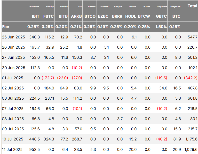 Pers yatırımcılarının verilerine göre Bitcoin ETFS spot Cuma günü 1 milyar dolardan fazla para topladı ve art arda yedi gün boyunca yatırımlar çekti.