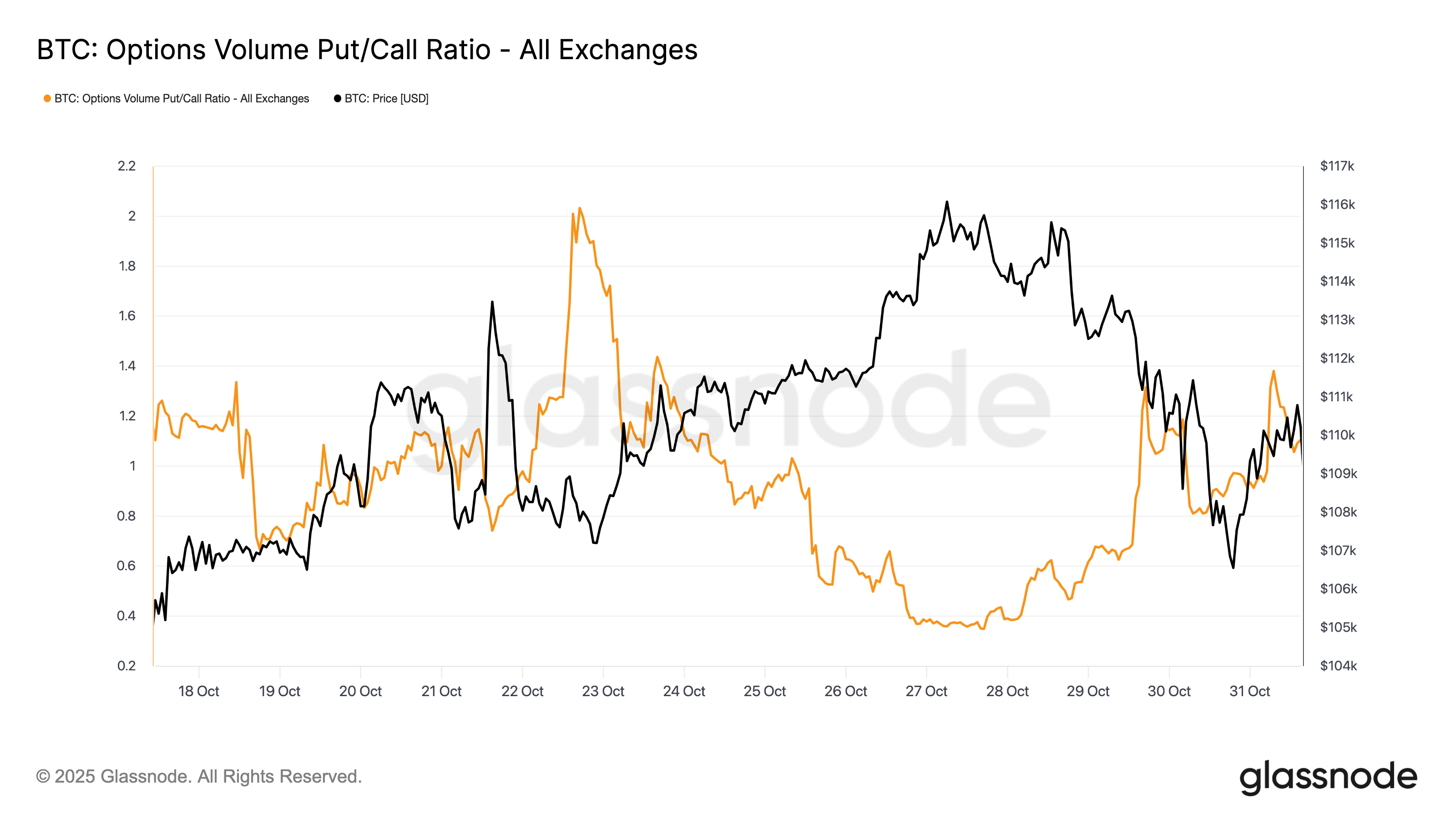 Bitcoin opsiyon hacim satış/alma oranı. Kaynak: Glassnode