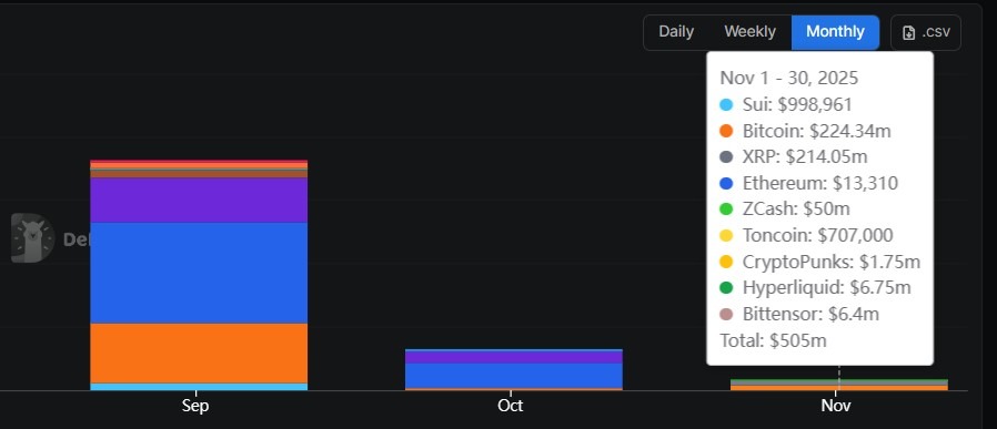 Veri toplayıcı DefiLlama, 20 milyar dolar değerindeki kripto pozisyonlarının tasfiyesinin ardından DAT girişlerinin Ekim ayında yavaşlamaya başladığını gösterdi. DAT girişleri Eylül'deki yaklaşık 11 milyar dolardan Ekim'de %80'lik bir düşüşle yaklaşık 2 milyar dolara düştü.