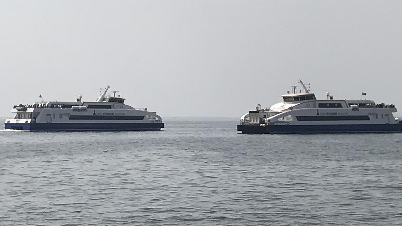 Izmir’de, güçlü rüzgarlar ve negatif deniz koşulları nedeniyle geçici olarak kesintiye uğrayan feribot uçuşları tekrar başladı.